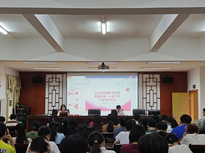 10月18日下午,为进一步加深会计学专业员工对专业的认识,帮助同学们更快更准确地了解所学专业现状及发展前沿,激发同学们对本专业的热爱和学习动力,明确未来的职业发展方向,太阳集团122cc邀请肇庆市审计局卓萍局长在文峰楼208室举办《立足经济监督 护航高质量发展--基于审计监督的实践》专题讲座。会计学专业员工100余人参加了讲座。讲座由公司副经理雷洪主持。