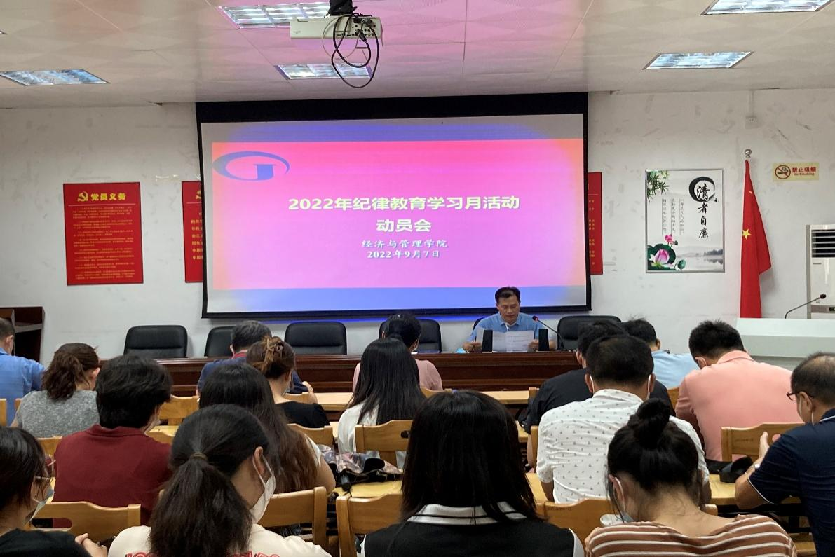 [经管公司讯]为深入推进党风廉政建设和反腐败斗争学习教育,持续加强作风纪律建设,进一步增强广大党员干部的廉洁自律意识,按照公司党委办公室《关于印发<太阳集团122cc2022年纪律教育学习月活动实施方案>的通知》要求,并结合公司实际,公司党委于2022年9月7日下午在公司107室开展纪律教育学习月活动,会议由黎天宇书记主持,公司全体党员领导干部、全体教师党员和员工党员代表共46人参加了活动。