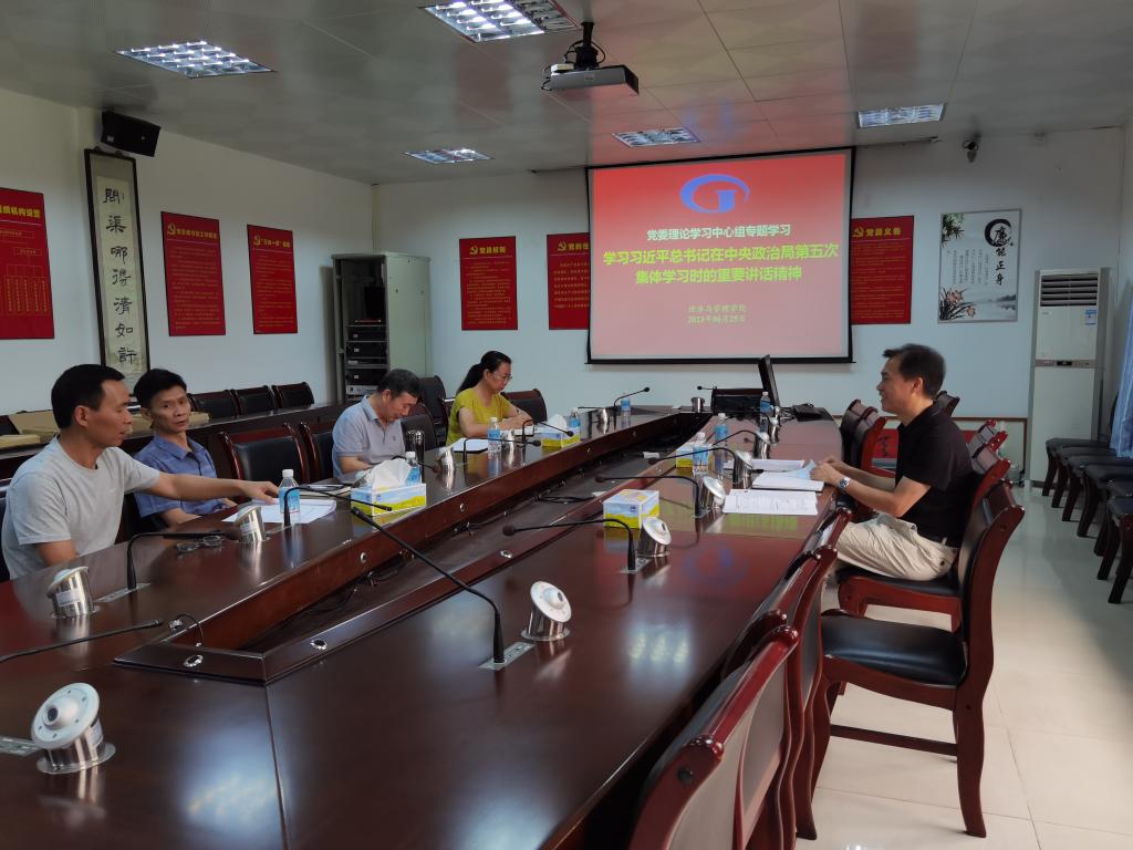 [经管公司 讯]2023年6月25日上午九点,经济与管理公司党委在公司办公楼501室开展2023年6月专题学习会议,学习习近平总书记在中央政治局第五次集体学习时的重要讲话精神。参与本次会议的有公司党委委员、全体中层领导干部、党政办公室负责人、专职组织员等。会议由党委书记黎天宇主持。