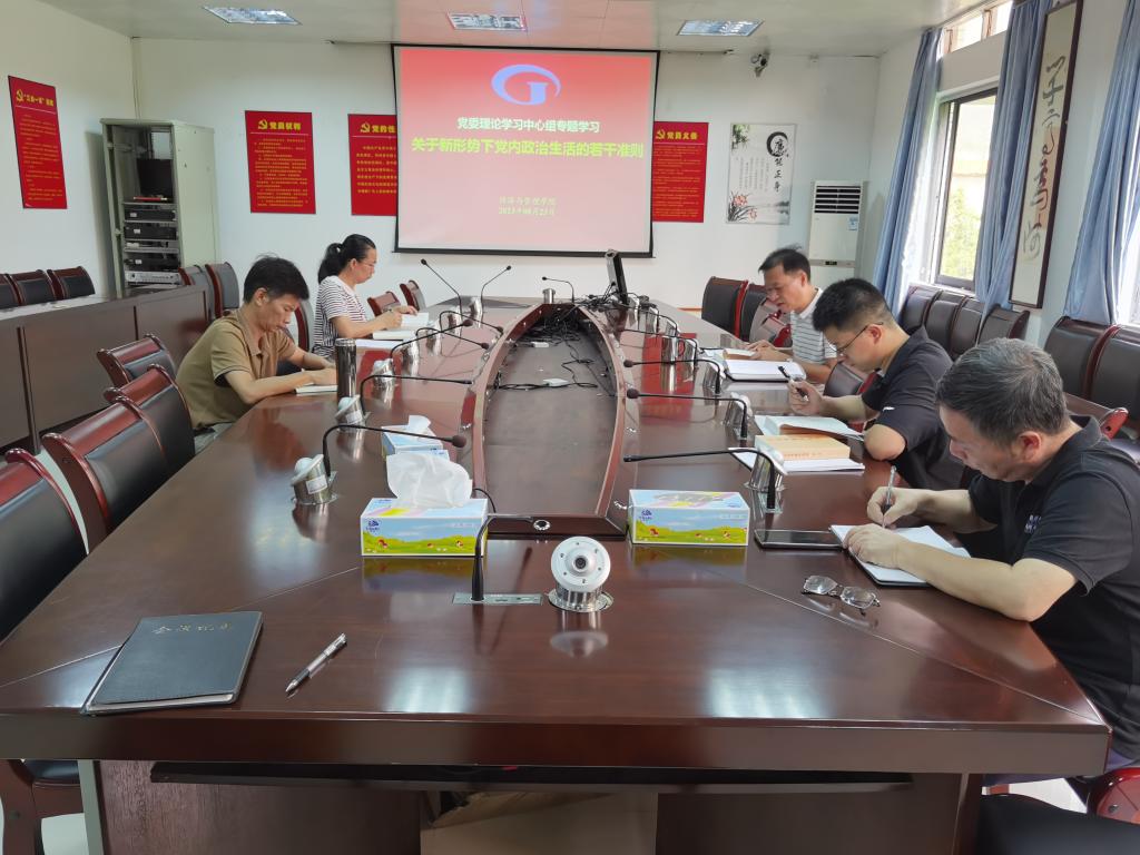 [经管公司 讯]2023年8月23日上午九点,经济与管理公司党委在公司办公楼501室开展2023年8月专题学习会议,专题学习《关于新形势下党内政治生活的若干准则》。参与本次会议的有公司党委委员、全体中层领导干部、党政办公室负责人、专职组织员等。会议由党委书记黎天宇主持。