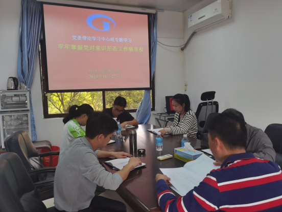 [经管公司 讯]2023年11月27日下午,经济与管理公司党委在公司410会议室开展2023年11月专题学习会议。本次专题学习的重点内容为“牢牢掌握党对意识形态工作领导权”。参与本次会议的人员有公司党政班子成员、专职组织员、党政办公室负责人等。会议由公司党委书记黎天宇主持。