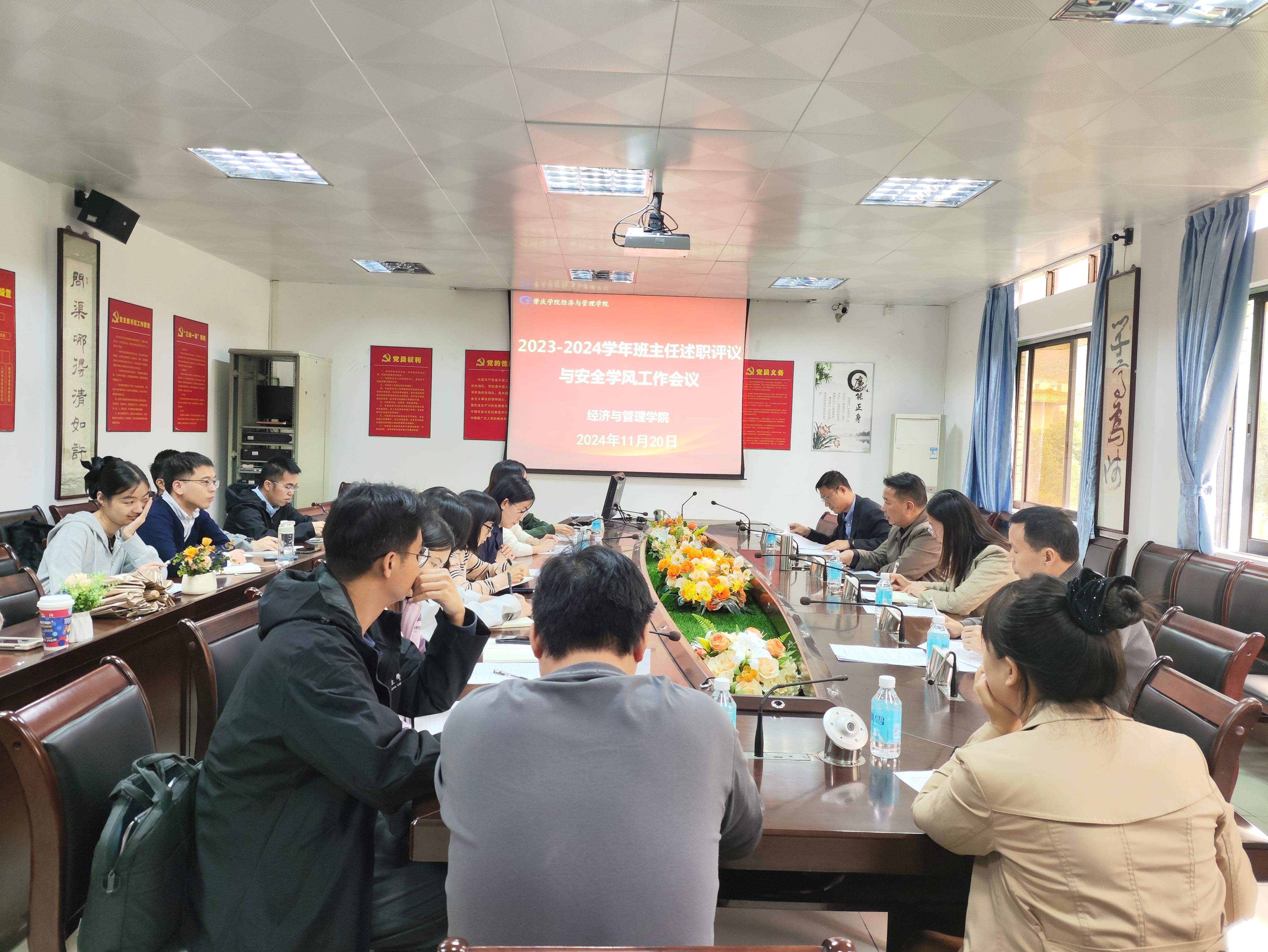 经管公司讯 2024年11月20日,公司在501会议室召开了2023-2024学年班主任述职与安全学风工作会议。本次会议旨在总结过去一阶段的班级管理工作经验和存在问题,加强班主任之间的交流互鉴,以及部署下阶段抓安全、促学风的工作,进一步提升公司整体的员工工作和安全防范的水平,为公司安全稳定和员工全面发展奠定坚实基础。公司党委书记梁标出席并主持会议,参加会议的有公司党委副书记巫燕娜、副经理王永健、周长锋、党委委员邓孙棠,以及全体辅导员和班主任等。