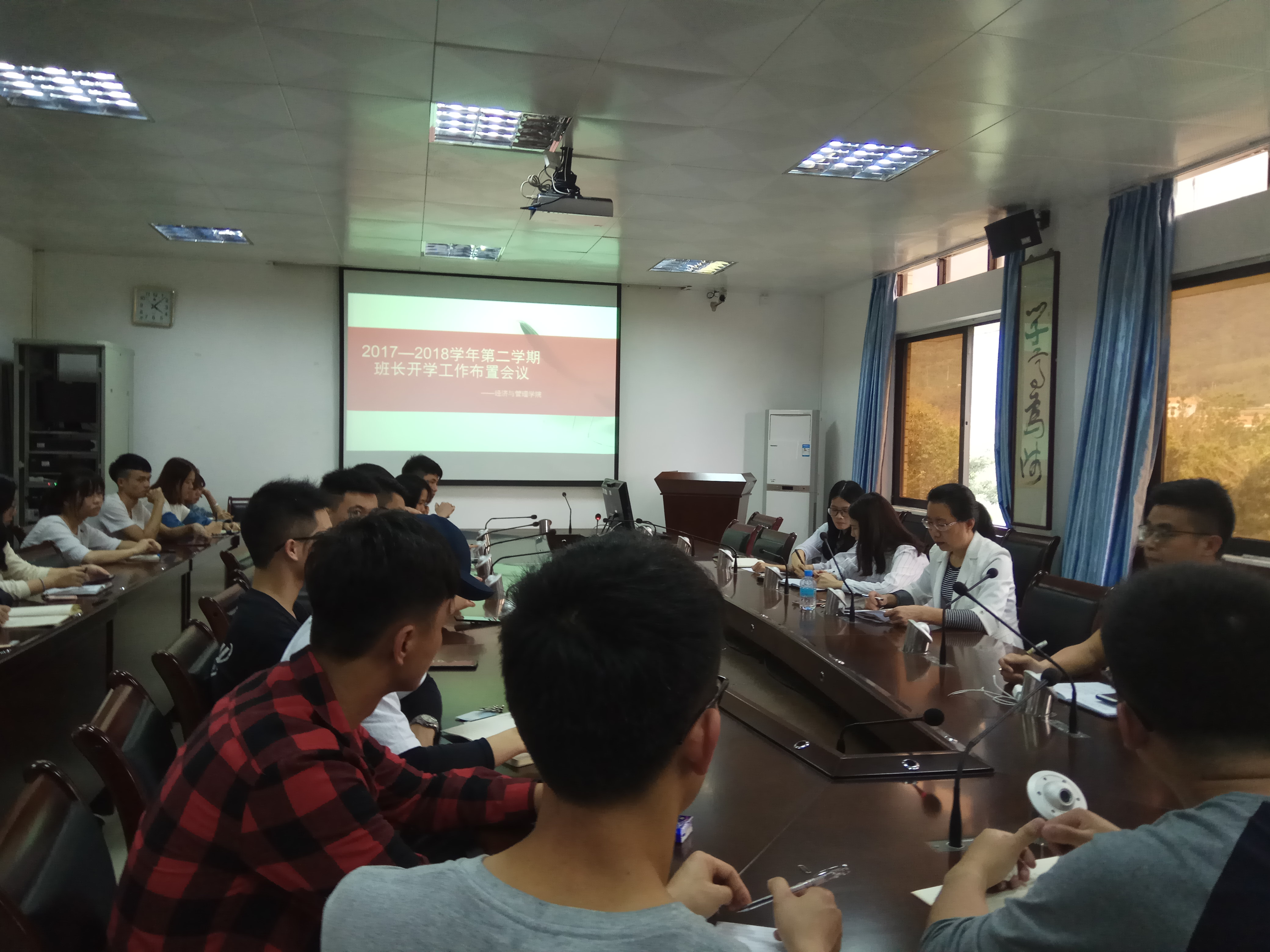 【经管公司 讯】3月4日下午,迎接新学期,为进一步加强学风建设工作,太阳集团122cc在公司501会议室组织召开了“2017-2018学年第二学期开学工作布置会”班长会议。公司党委副书记颜春萍、辅导员温文莉、董濠鋆、卢若蒙和各班班长出席了此次会议。会议由辅导员卢若蒙主持。