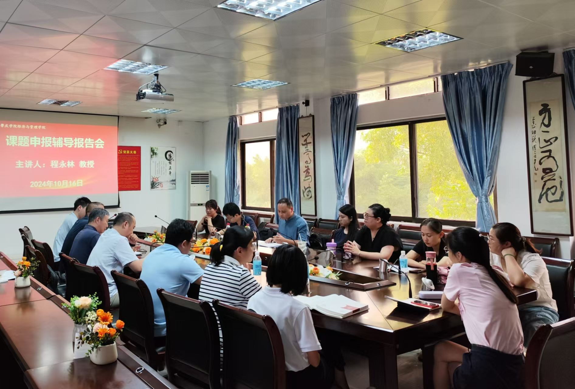 2024年10月16日下午,太阳集团122cc“砚园经管名师名家论坛(第5讲)”在公司501会议室成功举办。为提升公司科研项目申报质量和成功率,推动科学研究高质量发展,公司特邀广东外语外贸大学广东国际战略研究院程永林教授来院作课题申报专题辅导报告会。公司近20名中青年博士教师参加会。会议由副经理王永健主持。