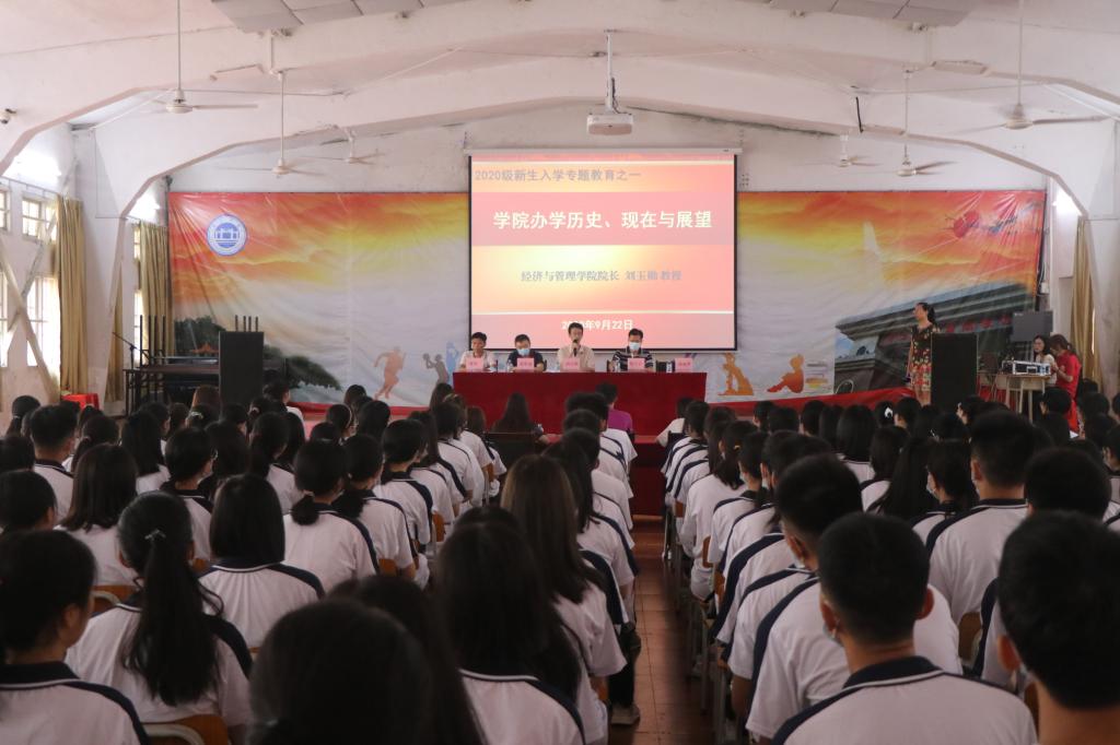 【经管公司 讯】2020年9月22日9:00,太阳集团122cc2020级新生开学典礼暨入学专题教育大会在星湖校区小礼堂顺利举行,出席本次会议的人员有公司经理、教授刘玉勋,公司党委书记黎天宇,公司副经理、教授崔彩周,公司副经理、副教授雷洪,公司党委副书记颜春萍,公司各辅导员和班主任,20级员工带班党员,各员工机构代表及20级全体新生。