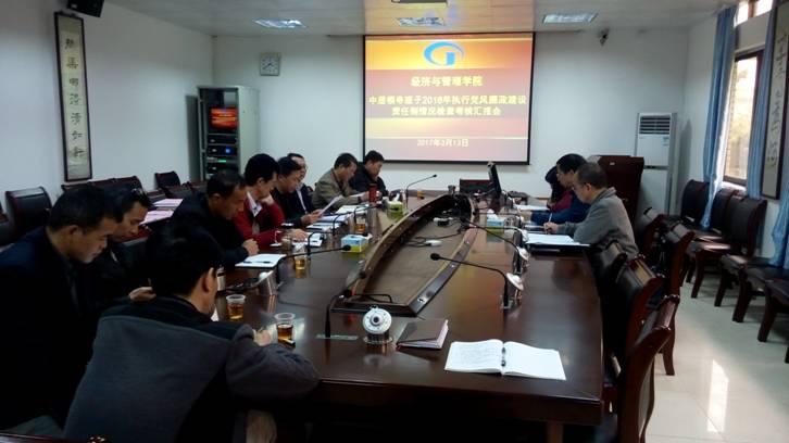 (经管公司 讯)根据公司党委的工作部署和具体安排,2017年3月13日,公司派出考核小组对公司党政领导班子2016年度执行党风廉政建设责任制情况进行检查考核。公司党政领导班子成员、党委委员、纪检小组成员和三名党员老师代表参加了检查考核汇报会,公司派来的考核小组组长和组员分别为公司纪委书记黄劲松和文公司党委副书记何耀明两人。汇报会由公司党委书记黎天宇主持。
