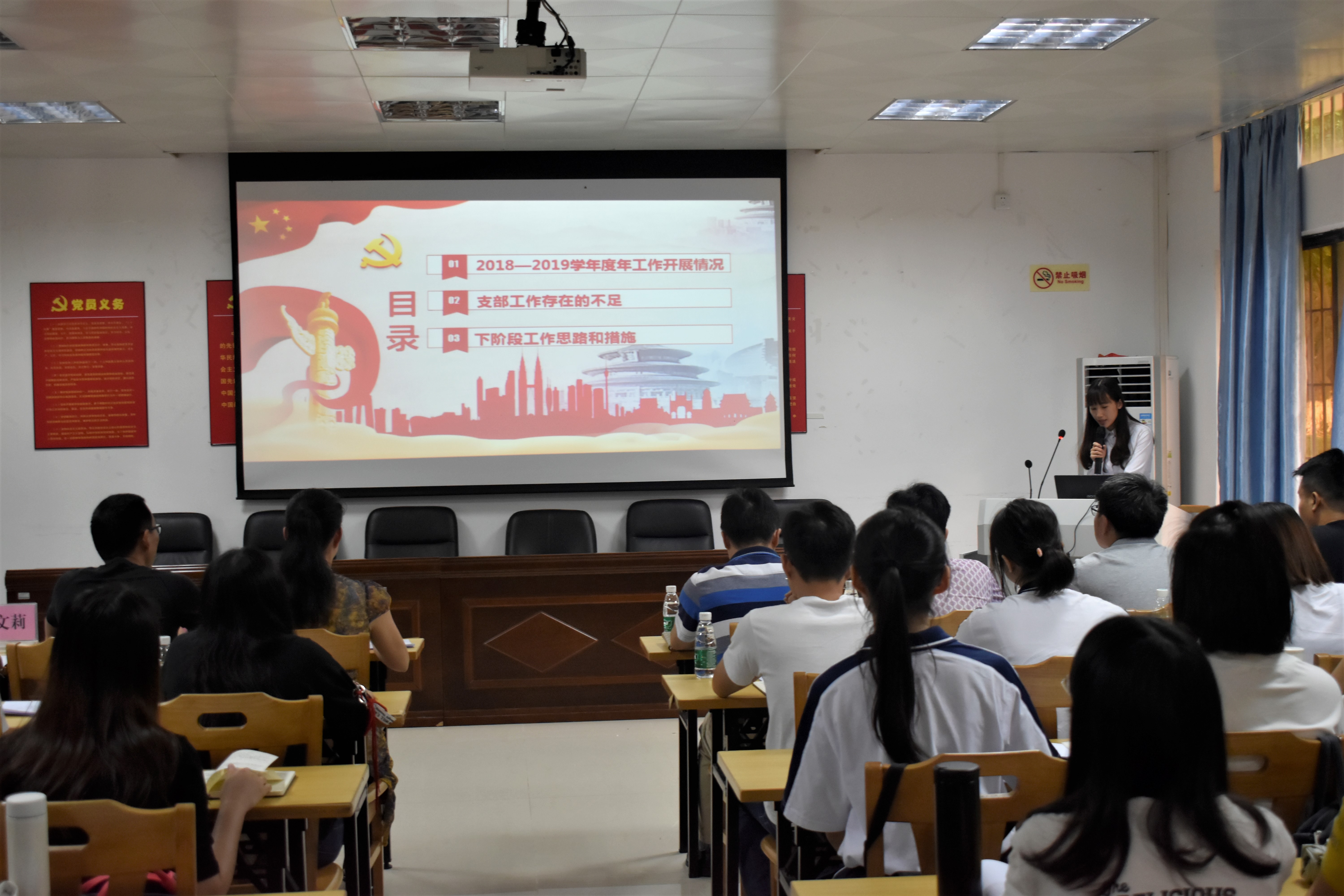 出席会议的有公司党委书记黎天宇,公司党委副书记颜春萍,公司党委委员、副经理雷洪,公司党委委员邓孙棠,公司辅导员张鹏军、温文莉、董濠鋆和卢若蒙以及各员工党支部委员、各员工党支部参评人员及 2019 年上半年新发展的预备党员。