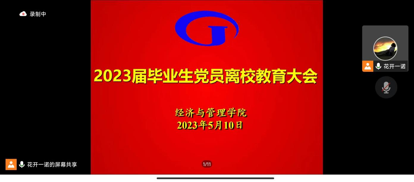 [经管公司 讯]为进一步激发毕业生党员爱党爱国爱校情怀,增强党员使命担当,5月10日下午,我院组织召开了毕业生党员离校教育大会。公司专职组织员王嘉主持会议,2023届全体毕业生党员参与。
