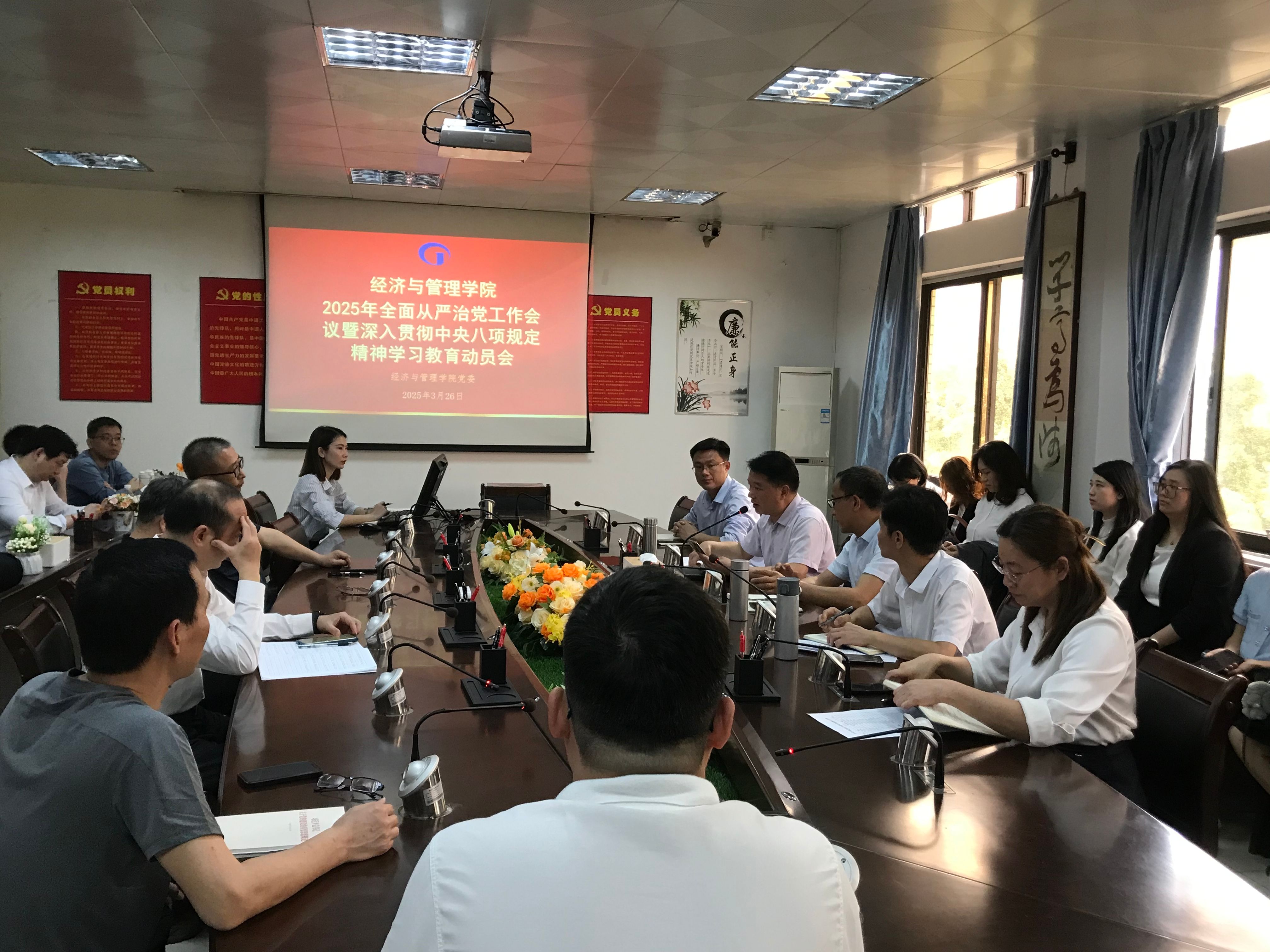 [经管公司 讯]2025年3月26日下午,公司在公司办公楼501会议室召开2025年全面从严治党工作会议暨深入贯彻中央八项规定精神学习教育动员会,公司党委书记梁标代表公司党委作学习教育动员学习报告,公司全体教职工出席本次会议。