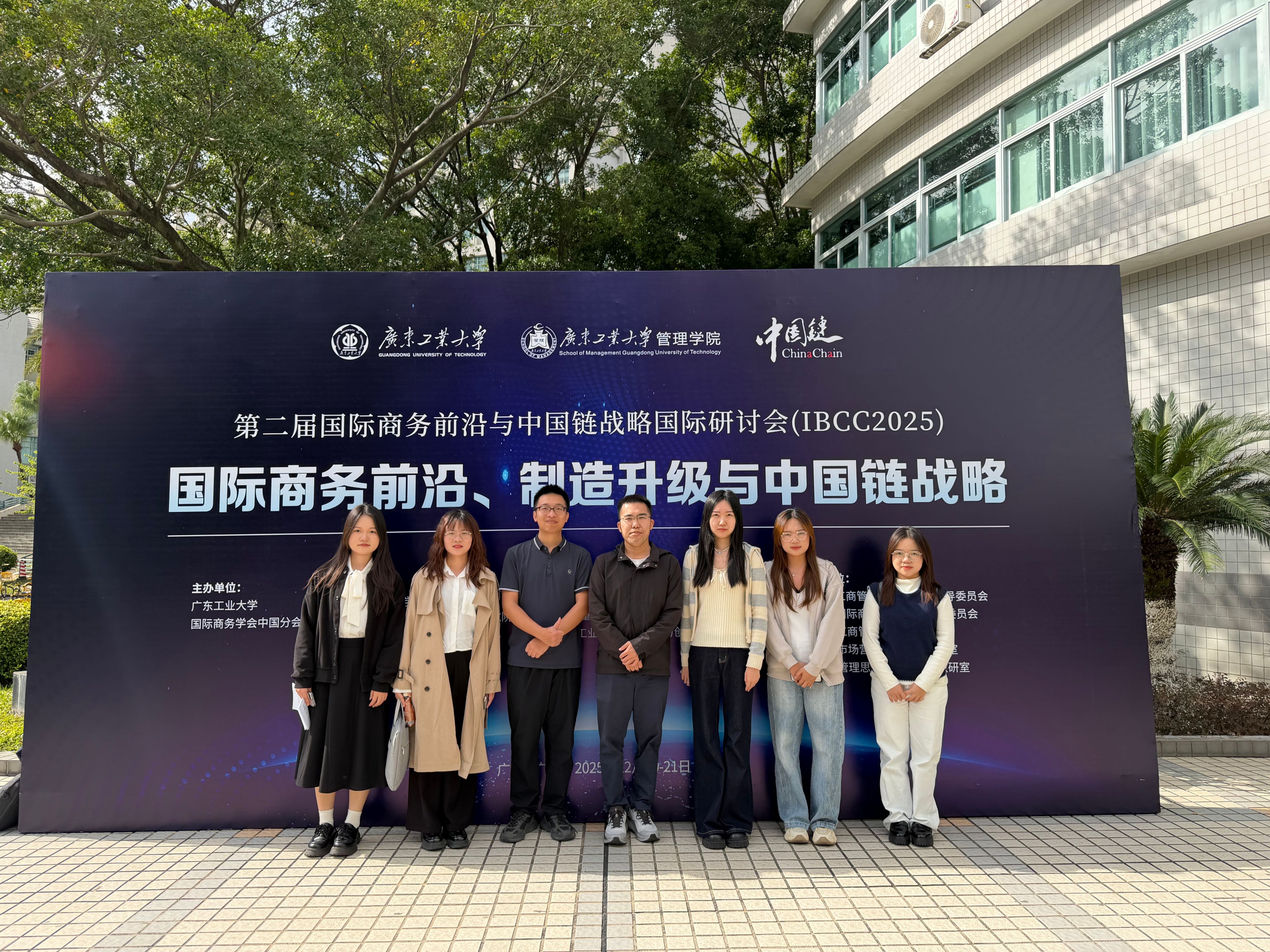 2025年12月20日-21日,第二届国际商务前沿与中国链战略国际研讨会(IBCC 2025)在广州举行,太阳集团122cc蔡三希博士、陈金源博士、温可仪博士,以及2025级国际商务硕士研究生陈丽宇、单雯、张可欣和舒阳莉参加了本次会议。会议以“国际商务前沿、制造升级与中国链战略”为主题,围绕国际商务治理、全球产业链重构、数字化转型与中国链发展等前沿议题展开深入研讨,吸引了来自国内外高校和科研机构的专家学者参会交流。