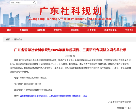 近日,广东省社会科学界联合会公布广东省哲学社会科学规划2026年度常规项目、三类研究专项拟立项名单。公司教师黄允爵博士、陈金源博士申报的课题分别为《面向耐心资本供给的多层次金融体系构建与广东省创新企业梯度培育路径》和《共建陆海新通道赋能广东外贸韧性的机理与路径研究》,成功入选拟立项名单。