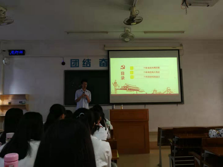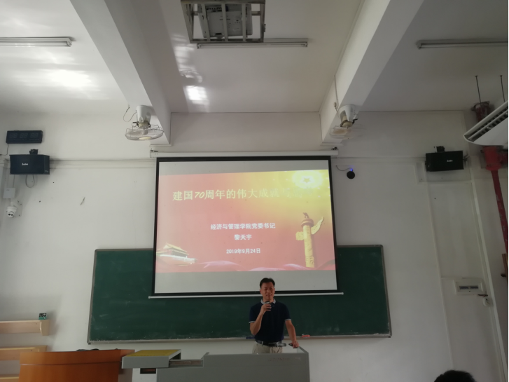 (经管公司 通讯) 根据公司党委办公室《关于做好二级公司党委书记、经理上第一堂思想政治理论课的通知》精神和要求,公司党委书记和经理认真按要求开展思想政治理论课开学第一课的上课工作,做到精心备课、认真上课。本学期黎天宇书记的思政课针对的是2018级会计学专业和2018级电子商务专业的员工,主题是“建国70周年的伟大成绩与思考”,主要内容包括:“建国70周年的伟大成就”和“思考:如何做一名有理想、有本领、有担当的新时代老员工”两部分。黎天宇书记的党课主要通过具体数据和事例向员工讲述我国建国以来取得的伟大成就,激发起员工的爱党爱国情怀和民族自豪感、坚定“四个自信”,然后进一步引导、教育大家作为新时代的老员工,一定要立“功崇惟志,业广惟勤”之理想、造“可堪大用,能担重任”之本领、求“百折不挠,勇往直前”之担当,激励大家要更加紧密地团结在以习近平同志为核心的党中央周围,高举中国特色社会主义伟大旗帜,坚忍不拔、锲而不舍,锐意进取,攻坚克难,为实现“两个一百年”奋斗目标和中华民族伟大复兴的中国梦而努力奋斗!课堂上黎天宇书记讲课认真、列举案例恰当、观点正确、员工认真听讲,课堂氛围和教育效果良好。