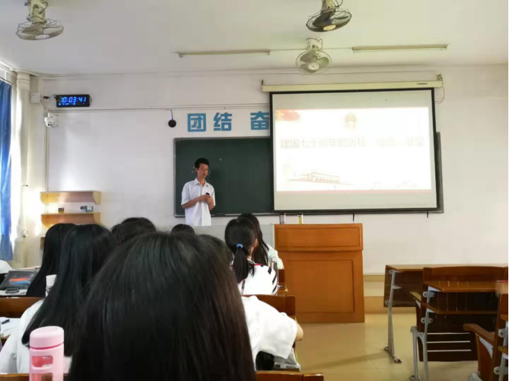 经理刘玉勋的思政课针对的是2018级国际经济与贸易专业和2018级市场营销专业的员工,主题为:“建国七十周年的历程、奇迹、展望——以GDP的发展变化为主线”,主要内容包括GDP的发展变化、GDP发展变化引发的思考、我国GDP发展变化——建国七十周年的奇迹三部分。刘玉勋的思政课先针对员工的专业学习,介绍了GDP的核算方法,跟着提出了关于GDP的三个问题,让员工深入思考:一是为什么我国的GDP会高速增长(10%)30年?二是未来10年我国的GDP能否常态增长(6%)?如何才能保持常态增长?三是如何提高GDP的质量?然后刘经理主要以我国GDP的发展变化为主线,通过GDP大幅快速提升的事实,向员工讲述了我国建国70年的发展历程和从13个方面介绍了我国取得的举世瞩目的伟大成就,展示了我国建国70周年创造的人类历史上前所未有的发展奇迹,大大激发了同学们的民族自豪感和强烈的爱国情怀,鼓舞了同学们为实现“两个一百年”奋斗目标和中华民族伟大复兴的中国梦而奋斗的信心和决心。