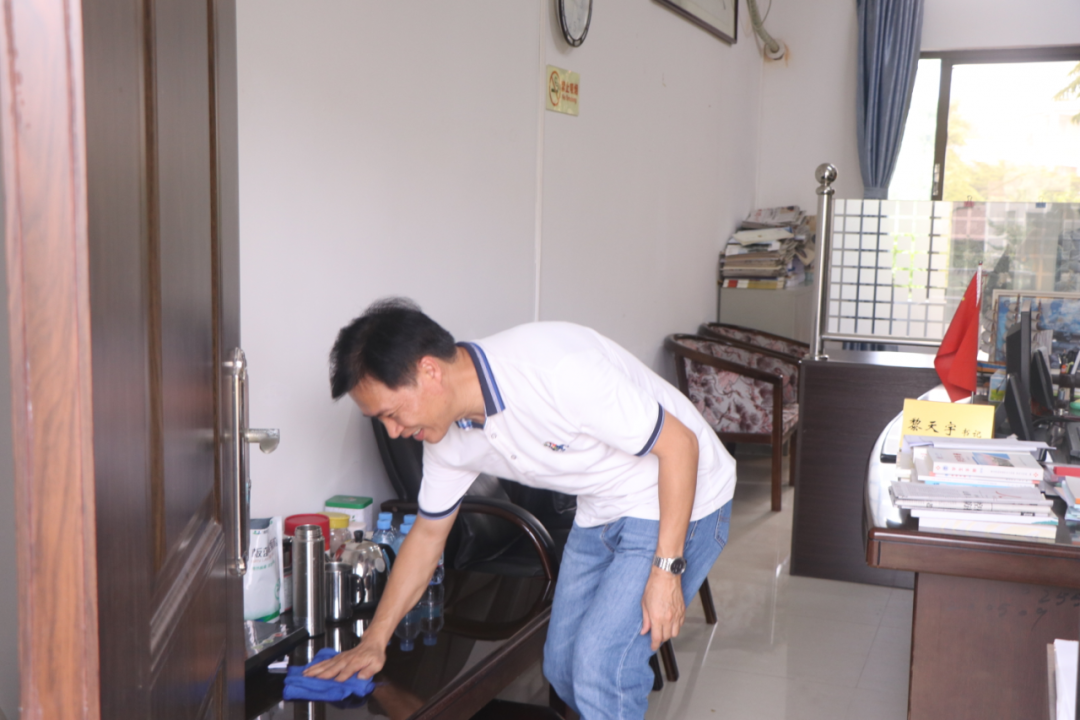 在颜春萍副书记的部署下,24名机构志愿者"兵分"5组,分别负责院办每层楼的清洁工作,做到不留死角,公司黎天宇书记以身作则,清扫自己的办公室。志愿者们对办公室、走廊地板、门窗等都进行了细致的清洁工作,并对没用的旧物进行清空,力图借爱国卫生运动,彻底整治"脏乱"现象,营造整洁卫生的校园环境。