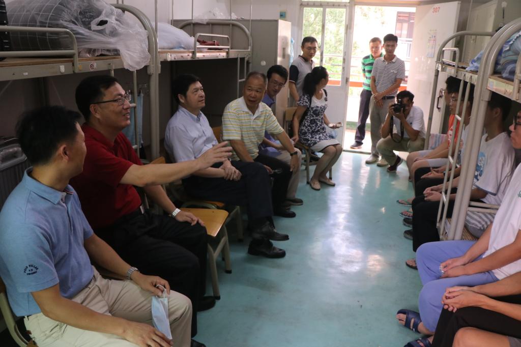 【经管公司 讯】9月21日下午,公司党委书记曾桓松、副书记谢冠华、黄劲松在相关职能部门负责人和公司领导的陪同下走访公司新生宿舍。走访过程中,校领导与新生们亲切交谈,询问新生报到和宿舍入住的情况,鼓励新生们在学习上树立远大目标,在生活中勇于挑战,在行为中自律自省,团结勤奋、进取创新,同时寄语新生在日后的学习生活中乘风破浪、争创佳绩,在肇院书写青春的崭新篇章。