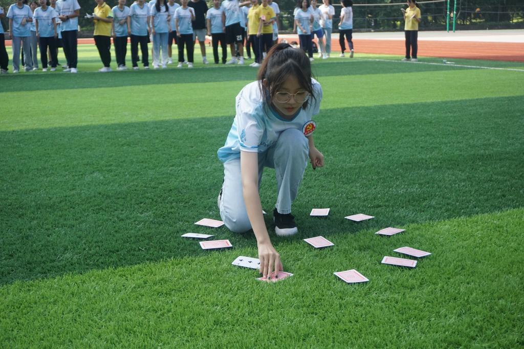 此次活动分为四个流程:第一部分由工作人员组织员工排列方阵进行5分钟的热身运动并进行分组;第二部分进行团队游戏,游戏分为四个部分,分别为破冰起航,你画我猜,记忆翻牌,弹珠接龙,并采取比赛积分的方式进行小组评比;第三部分每个小组派一名代表发表自己对这次活动的心得体会,最后由温文莉老师对本次活动进行活动总结,并进行颁奖;第四部分全体参赛人员及活动工作人员进行合影留念。破冰启航活动过程中同学们积极思考队名、口号和队形,集思广益,增进了同学之间的交流;“你画我猜”游戏中锻炼了同学们的想象力以及动手能力,增加了活动的趣味性;“记忆翻牌”中锻炼了同学们的记忆力和团队的配合能力;“弹珠接龙”锻炼了同学们的专注力。游戏比赛前同学们积极讨论游戏战术,比赛过程中同学们热情高涨,积极参与游戏,为小组争光,足球场充满同学们的加油声、欢呼声。此次活动不仅让他们认识到了新朋友,增进了同学们之间的感情,还懂得了团队合作的重要性。