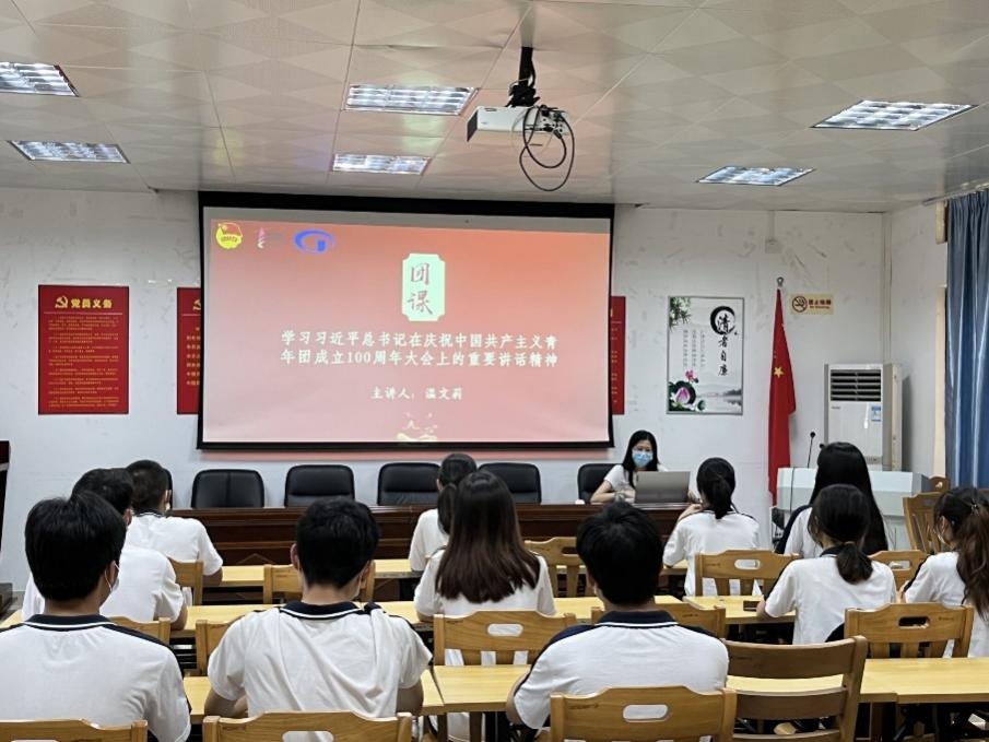 本次团课主要围绕百年团史,习近平总书记对青年的希望寄语展开学习。团委书记温文莉对加入中国共产主义青年团的流程进行讲解,随后加深各积极分子对中国共产主义青年团意义的认识。她希望,作为一名入团积极分子需时刻严格要求自己、积极向共青团中的优秀榜样学习。同时对共青团的青年奋斗史也作出了学习与讲解,各入团积极分子意识到,在新时代中国特色社会主义伟大实践中,当代青年应当经风雨、见世面,勇于接受各种挑战,主动担当,务实干事,用知识武装头脑,不断增强搏击风浪的本领。