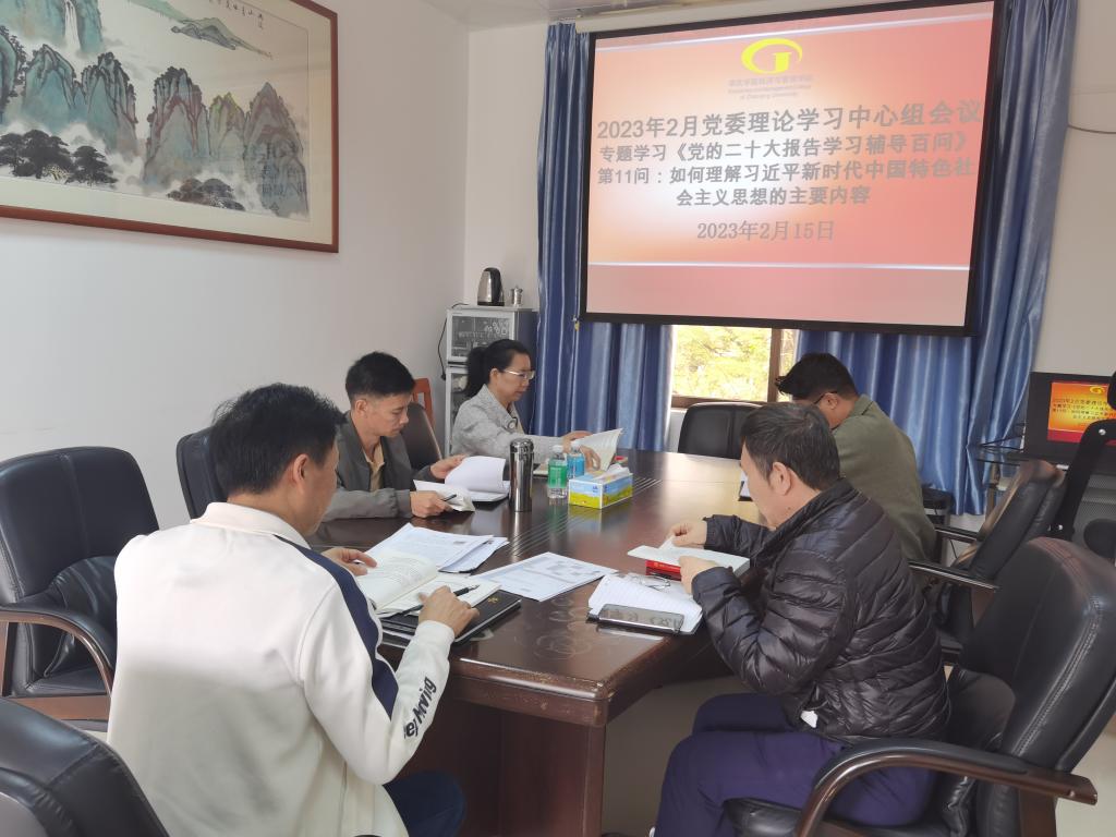 [经管公司 讯]2023年2月15日下午三点,公司在办公楼501室召开党委理论学习中心组学习会议,围绕《党的二十大报告学习辅导百问》开展专题学习。参与本次会议的人员有公司党委委员、全体中层领导干部、专职组织员和办公室负责人。会议由公司党委书记黎天宇主持。
