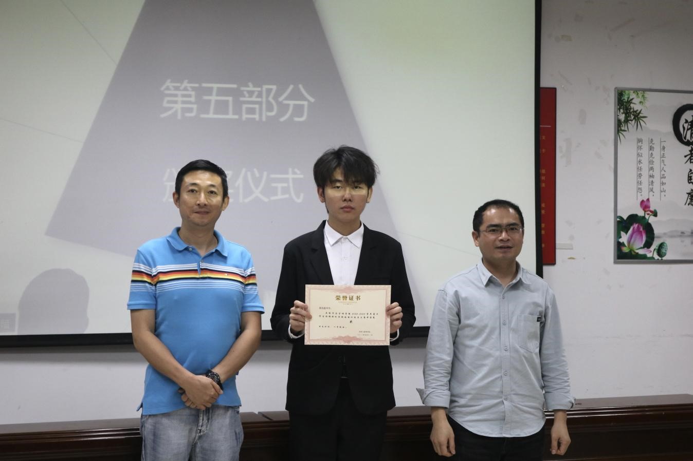 比赛分两个环节,分别为PPT演讲和招聘现场模拟。在PPT演讲中,十一组选手根据抽签顺序依次上台,通过对PPT讲解展示团队策划的招聘方案,评委老师针对选手的招聘方案、PPT内容作出细致点评,并向选手提问。在现场模拟招聘环节,由选手扮演面试官和面试者进行招聘模拟,评委综合选手的形象举止、专业职能、以及沟通能力进行打分。经过几个小时的激烈比拼,获奖队伍诞生,由李希老师和邓言平老师为获奖队伍颁发奖状。