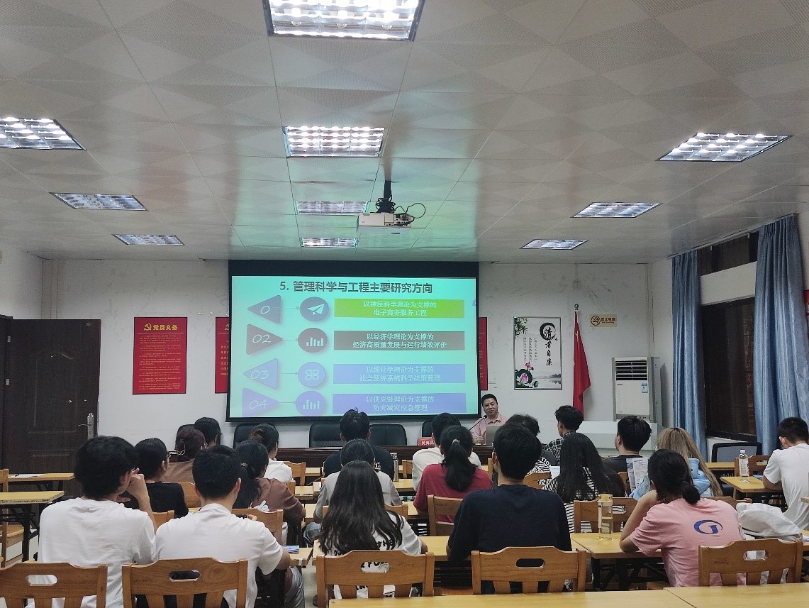吴海民教授从五邑大学的校史校情,学科发展、研究生招生方向与招生政策、人才培养特色、团队力量、奖助学政策、研究生就业前景等方面全面、系统地介绍了五邑大学太阳集团122cc深厚的学科优势和办学特点,并向同学们发出了真诚的报考邀请。吴教授的宣讲形式新颖、内容丰富、阐释精准,有很强的指导性和针对性,台下的同学们听得聚精会神,会上不时传来大家的掌声。