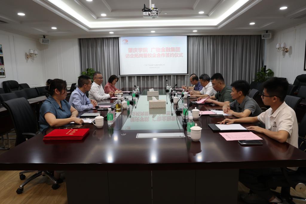 【经管公司讯】4月25日,副董事长胡文涛率队赴广东广物金融产业集团有限公司进行访企拓岗座谈,双方签订了校企合作协议并举行了专业实习基地授牌仪式。公司员工工作部、教务部、科学技术部、公司相关领导和老师,以及广物金融集团董事长卢恩健、副总经理陈迪森等出席了本次签约授牌仪式。