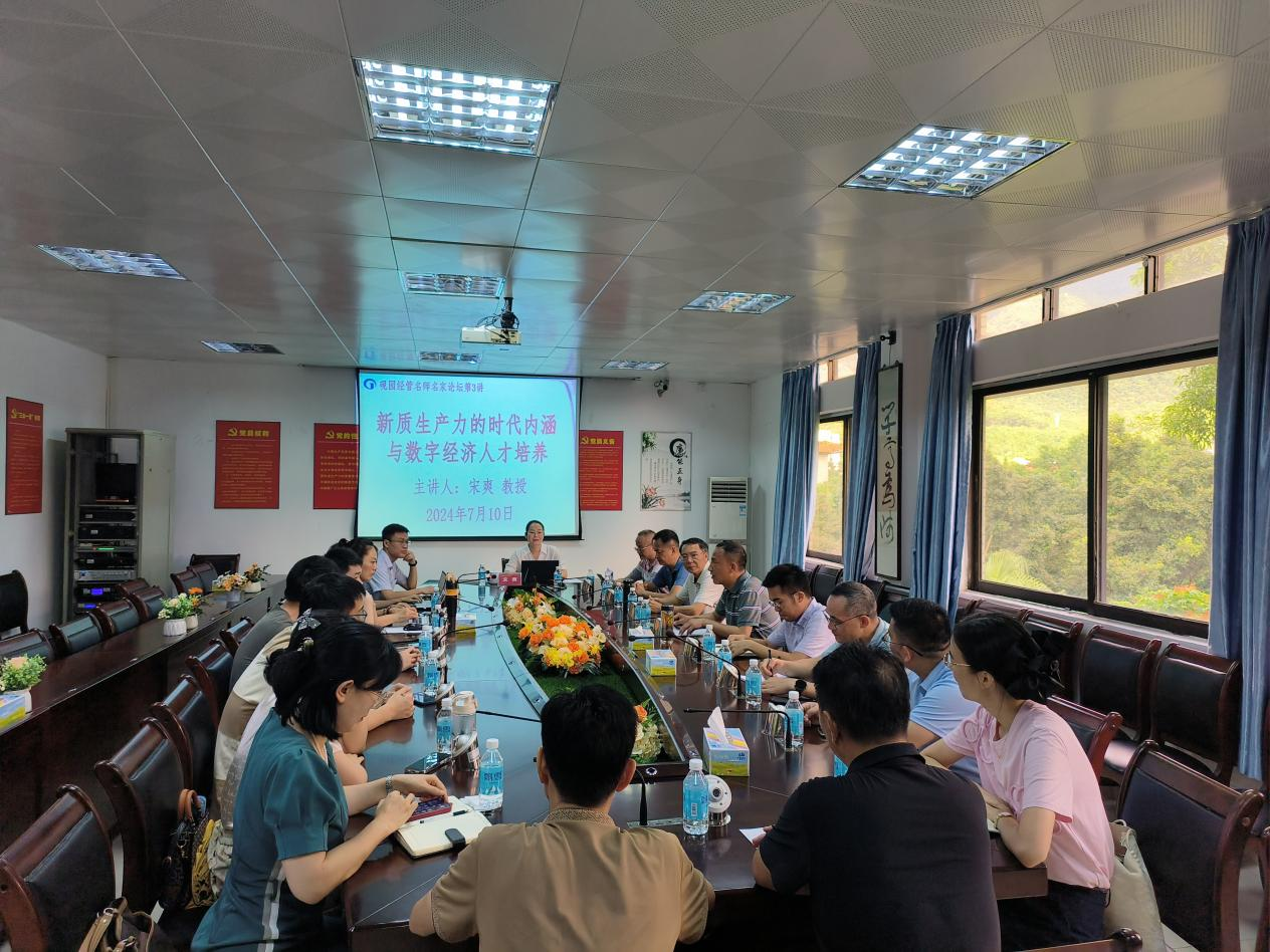 【经管公司 讯】7月10日,太阳集团122cc“砚园经管名师名家论坛”(第3讲)在公司501会议室成功举办。为深入学习贯彻习近平总书记关于新质生产力的重要论述精神,推进公司数字经济学科和专业建设,公司特邀西藏民族大学西藏数字经济研究所所长宋爽教授作题为《新质生产力的时代内涵与数字经济人才培养》的学术报告。公司党委书记梁标、经理李华军、副经理雷洪以及16名中青年骨干教师参加了报告会,会议由李华军经理主持。