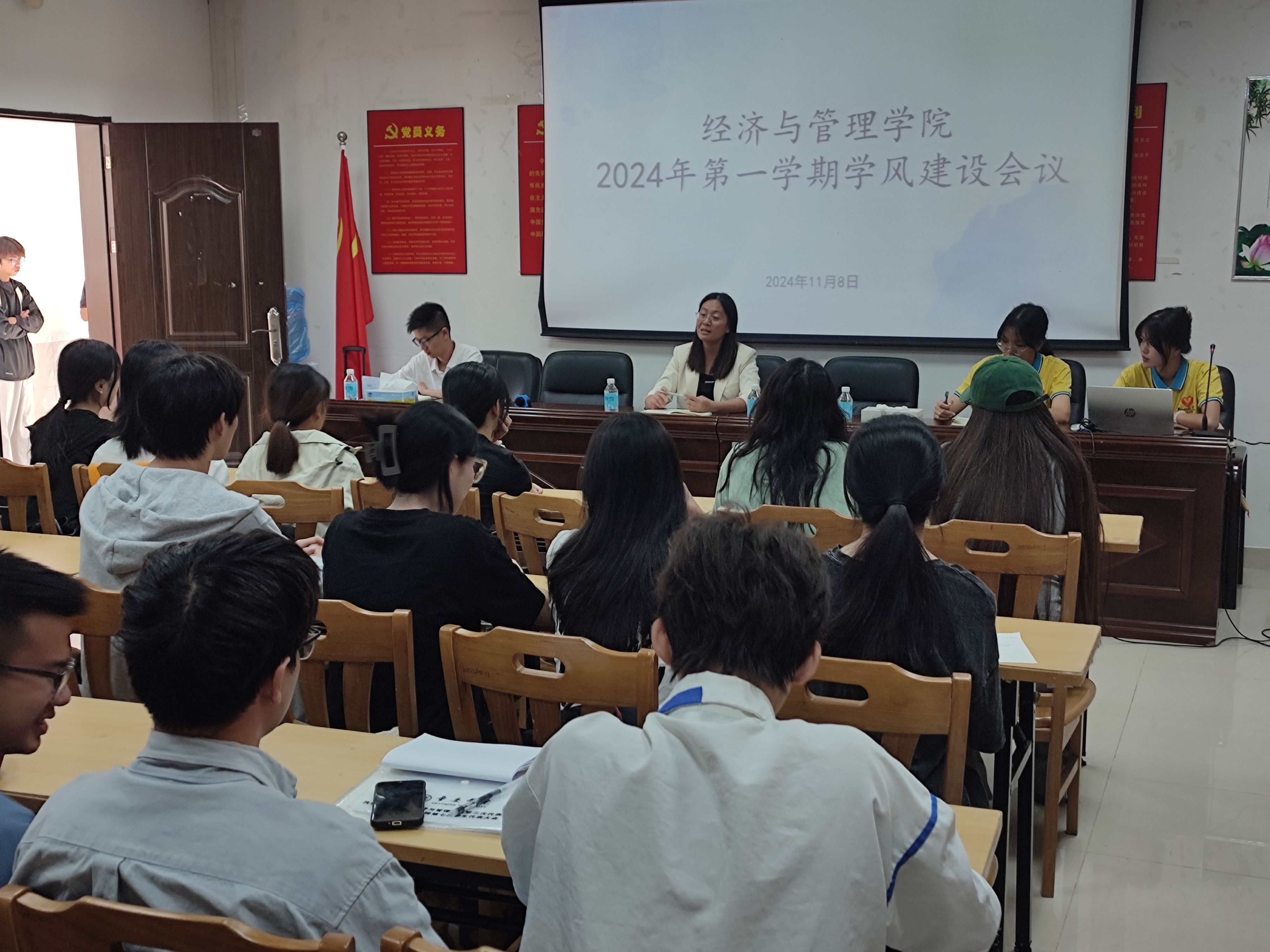 【经管公司 讯】11月8日,太阳集团122cc在公司107室召开学风建设会议。经管公司党委副书记巫燕娜出席并主持大会,出席本次会议的还有辅导员李力,各班级班长和纪律委员。