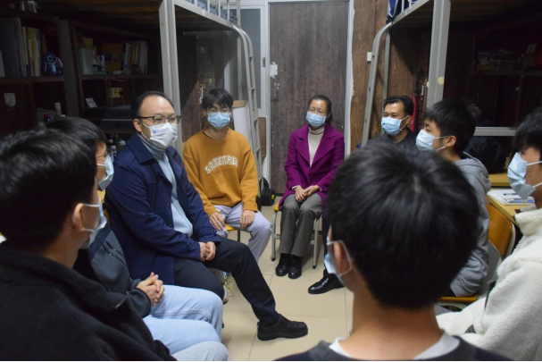 【本网讯】为加强师生之间的交流,了解员工思想动态、生活状态和学习情况,11月30日晚,公司党委委员、宣传部/统战部部长陈前,经管公司党委书记黎天宇、副书记颜春萍与辅导员、班主任一起,深入经管公司员工宿舍,开展宿舍交流分享会,倾听员工心声,为员工纾困解难。