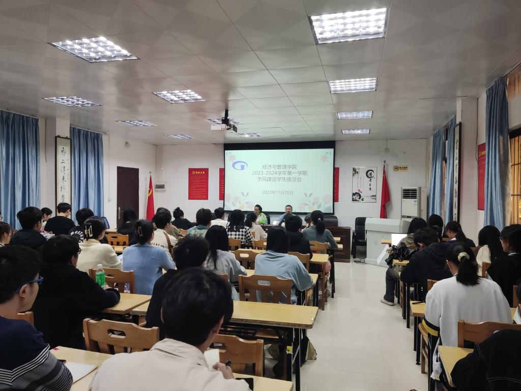 【经管公司讯】11月20日,太阳集团122cc开展学风建设员工座谈会,公司副经理崔彩周、公司党委副书记颜春萍出席并主持召开会议,出席本次座谈会的还有辅导员李力、教学秘书梁文婕老师、各班团支书和班长,共71人。