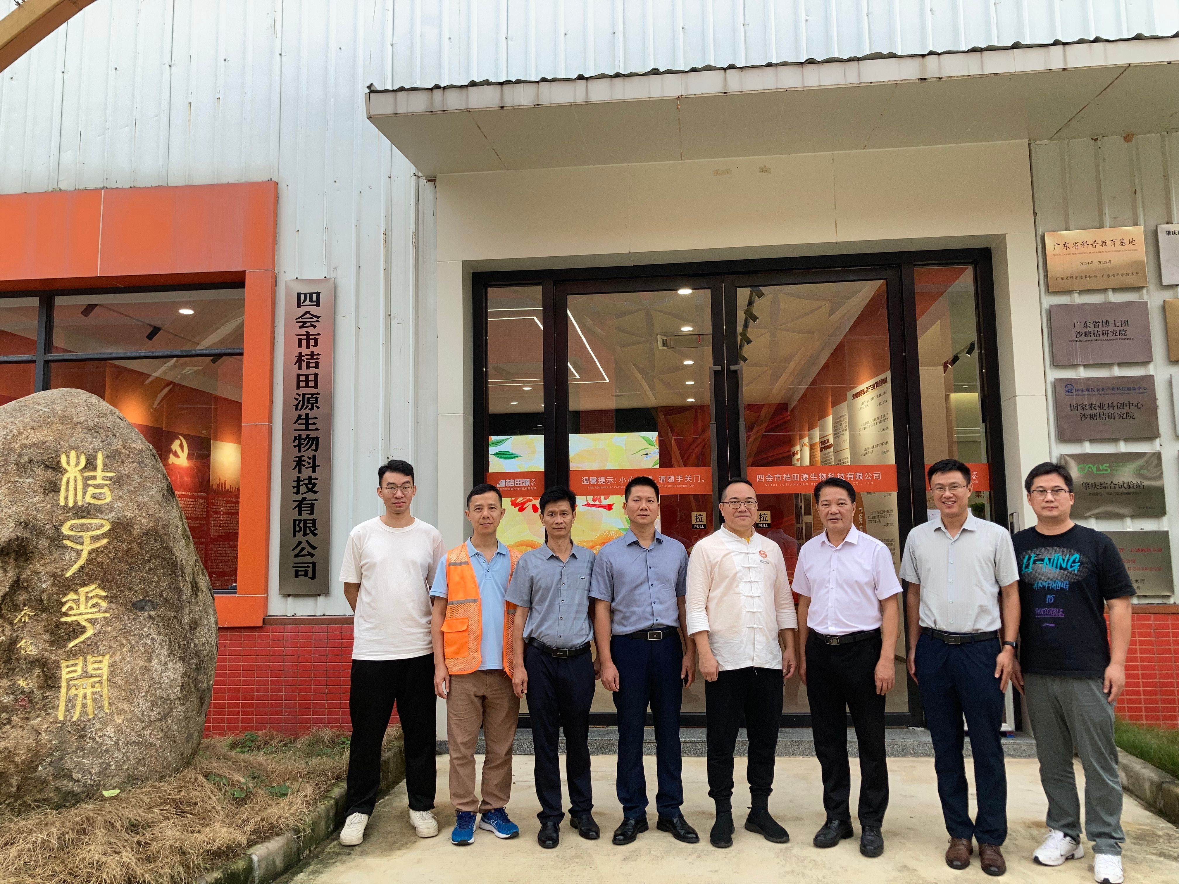 2024年11月15日,经济与管理公司党委书记梁标、副经理雷洪等一行来到四会市桔田源生物科技有限公司开展“双百行动”和“访企拓岗”活动,校科技部副部长、驻四会服务队队长杨国杰应邀出席了活动。