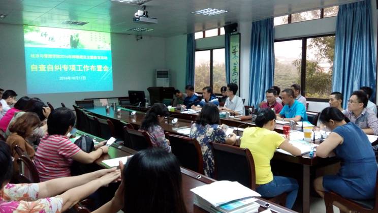 (经管公司 讯)根据公司开展师德建设主要教育活动的要求和公司开展师德建设主题教育活动的工作安排,公司于10月12日下午召开全院教职工大会,布置开展师德师风自查自纠专项工作,会议由公司党委书记黎天宇主持。会上,黎书记向全体教职工解读了本次自查自纠的主要内容并对活动各阶段要完成的任务进行了全面工作布置。会议最后,黎书记针对今年公司接受教学审核性评估对师德师风、工作作风、工作纪律方面的要求向全院教职工强调:大家要充分理解公司开展师德建设主题教育活动的目的、意义和对促进教学评估工作的重要作用,认真对照“七查七看”开展自查自纠和进行整改,通过自查自纠和认真整改不断提高自己的思想政治素质、职业道德水准和业务水平,为本科教学审核性评估工作创造良好的条件。
