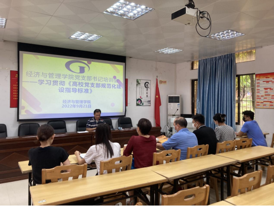 [经管公司 讯]为了深入学习贯彻习近平新时代中国特色社会主义思想,加强公司党支部规范化建设,按照公司党委组织部关于转发《中共广东省委组织部关于印发 <党支部规范化建设指导标准>的通知》要求,公司党委于2022年9月21日在公司107室召开党支部书记培训会,对全体党支部书记开展了学习贯彻《高公司党支部规范化建设指导标准》培训。会议由公司党委书记黎天宇主持,全体党支部书记出席了会议。