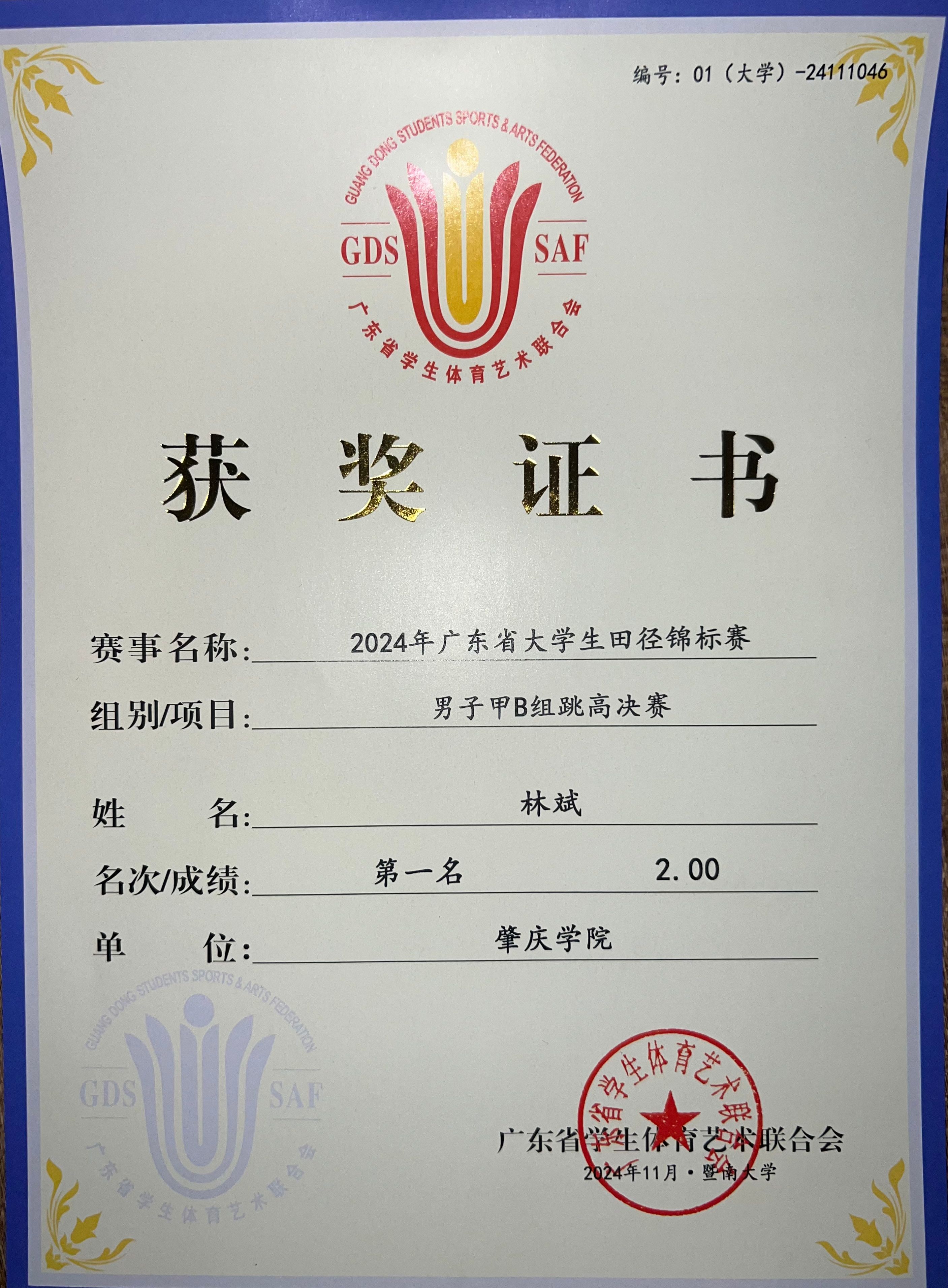 在领队孙中俊教练的带领下,经过3天的激烈角逐,林斌以2米的成绩获得2024年广东省老员工田径锦标赛男子甲B组跳高决赛第一名,较2022年和2023年第二名的成绩取得登顶式突破。他本人也连续三年打破了由自己保持的公司运动会和公司运动会记录,夺得太阳集团122cc2024年田径运动会普通专业男子跳高第一名。林斌同学始终秉承“脚踏实地,在平凡中追求进步”的经管人精神,奋力拼搏,追求卓越,既为观众奉献了精彩的比赛,更是为经管学子树立了榜样和激发了斗志。