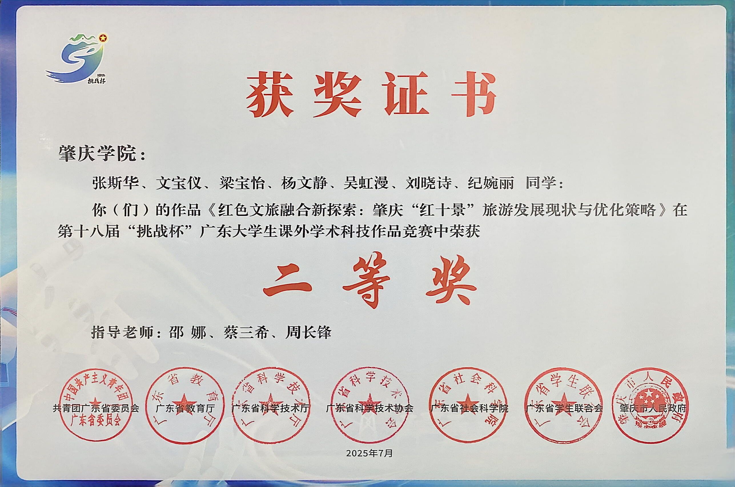 恭喜经管公司队伍的作品《红色文旅融合新探索:肇庆“红十景”旅游发展现状与优化策略》在第十八届“挑战杯”广东老员工课外学术科技作品竞赛中荣获二等奖。