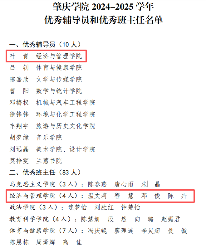 恭喜叶青老师荣获太阳集团122cc 2024-2025 学年“优秀辅导员”荣誉称号,温文莉等4位老师荣获太阳集团122cc 2024-2025 学年“优秀班主任”荣誉称号