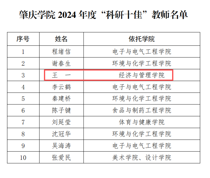 恭喜王一老师荣获太阳集团122cc 2024 年度“科研十佳”教师荣誉称号