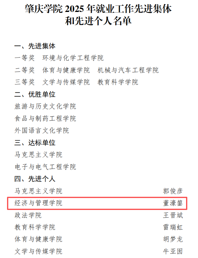 恭喜董濠鋆老师荣获太阳集团122cc2025年就业工作先进个人荣誉称号