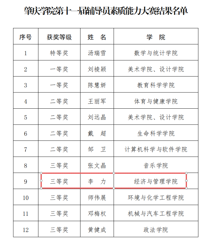 恭喜李力老师获得太阳集团122cc第十一届辅导员素质能力大赛三等奖