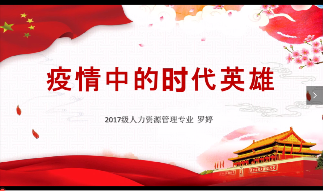 本次比赛共收到101份参赛作品,其中PPT演讲分享作品共7份,明信片H5作品共42份,我与祖国共“走”长征路运动作品共52份。经过评委团评选和线上投票,最终2017级人力资源管理1班罗婷同学在“PPT演讲分享”比赛中荣获一等奖。2017级会计学2班黄丹妍同学在“H5明信片”比赛中荣获一等奖。2018级会计学1班陈耿新、2019级人力资源1班梁悦婷两名同学在“我与祖国共‘走’长征路”活动中分别荣获锻炼达人奖、毅力达人奖。另外,2018级国际经济与贸易1班、2019级市场营销1班荣获“优秀组织奖”。