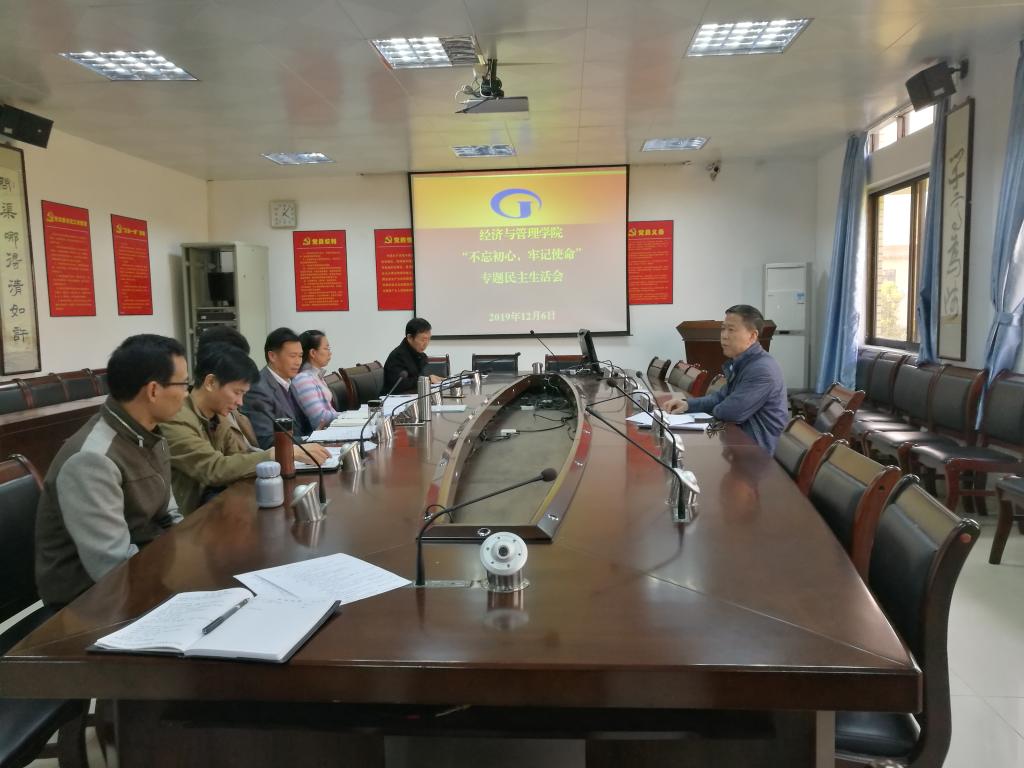[经管公司 讯]根据公司相关文件精神和要求,公司于2019年12月06日下午在公司办公楼五楼会议室召开领导班子“不忘初心、牢记使命”专题民主生活。公司民主生活会督导组成员、市党风廉政建设和反腐败研究中心负责人杨迎春教授参加会议并指导工作,公司领导班子成员、党委委员参加了会议,会议由公司党委书记黎天宇主持。