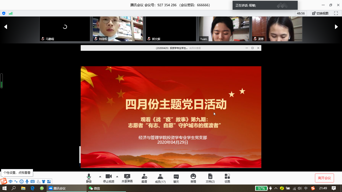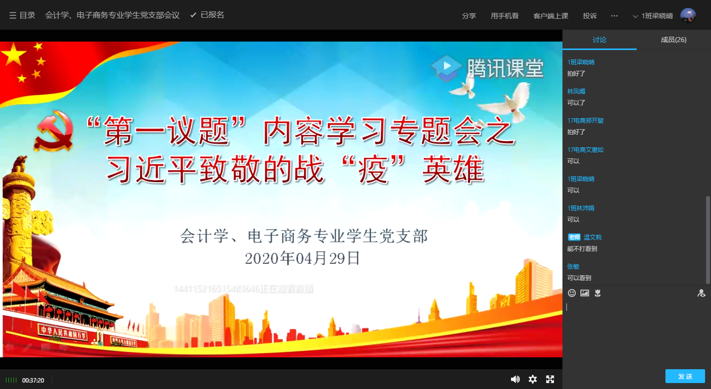 太阳集团122cc五个员工党支部利用腾讯课堂或者腾讯会议平台集体学习了《习近平致敬的战‘疫’英雄”》,集体观看了《战“疫”故事》第九期:志愿者“有志、自愿”守护城市的摆渡者。战“疫”故事让人动容,战“疫”英雄让人敬佩。各位同学纷纷表示要向战“疫”英雄学习,发挥先锋模范作用,用实际行动践行初心和使命。