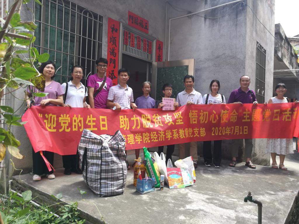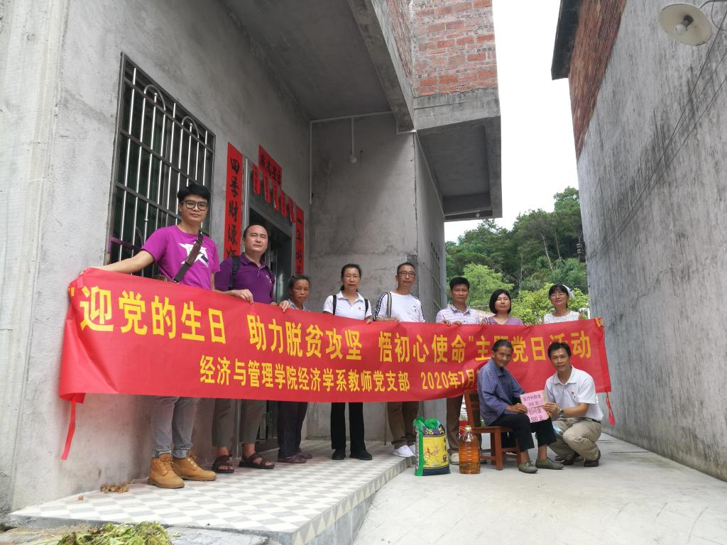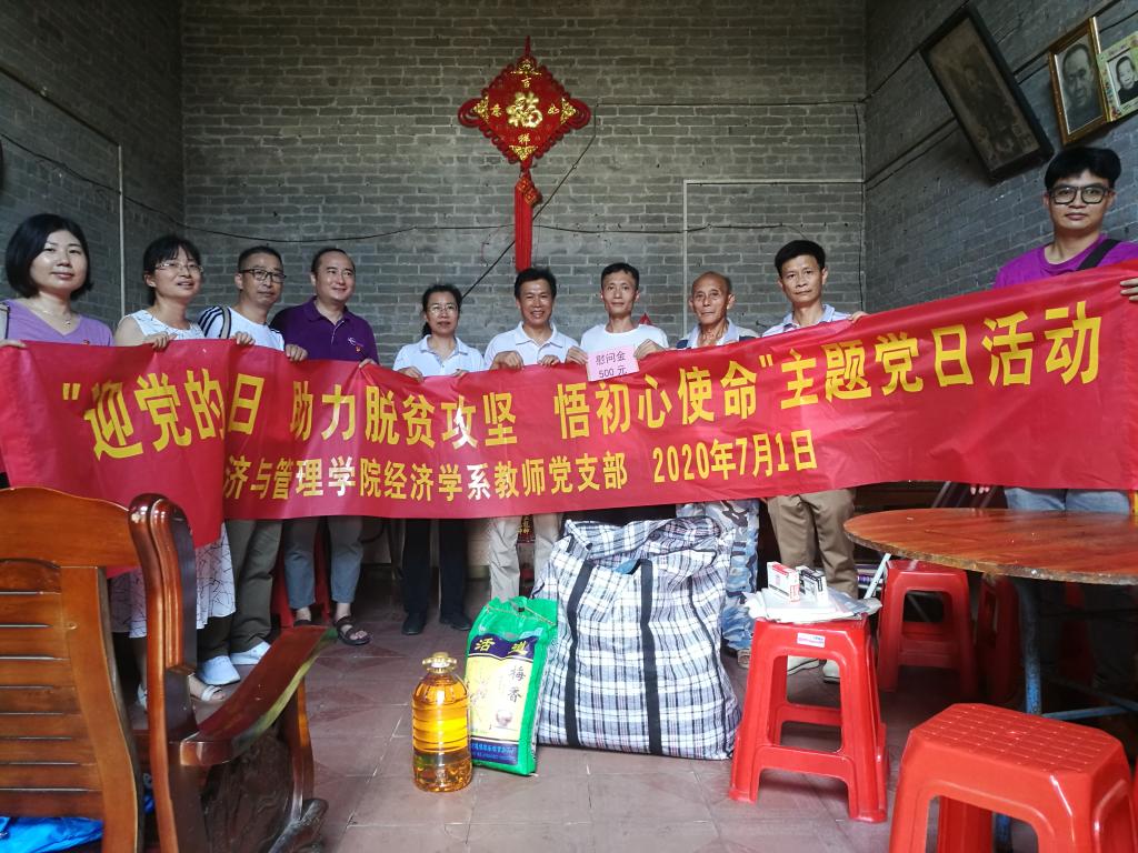 [经管公司 讯]为贯彻落实党中央关于常态化疫情防控的决策部署,充分发挥高校基层党组织战斗堡垒作用和教师党员先锋模范作用,让党旗始终高高飘扬在疫情防控、返校复学、事业发展全过程全方位。根据公司党委组织部《关于开展在常态化疫情防控中加强基层党建“四个一”行动的通知》(肇学组通〔2020〕15号)精神和公司党委办公室《关于开展2020年肇庆公司党日主题活动暨扶贫济困专题活动的通知》要求,结合公司开展扶贫调研慰问工作,公司党委组织经济学系教师党支部于2020年7月1日赴广宁县开展“迎党的生日,助力脱贫攻坚,讲战疫故事,悟初心使命”主题党日活动。经济学系全体党员、公司党员领导干部、公司扶贫责任人和联络员、专职组织员参加了活动。