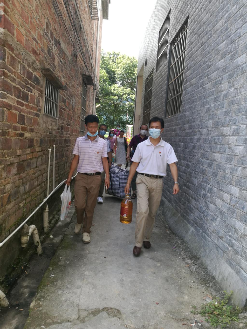 恰逢党的99周年生日,党员们首先来到广宁县横山镇初心堂重温入党誓词,在鲜红的党旗下,全体党员佩戴党徽,庄严宣誓。随后大家前往横山镇、南街镇、石涧镇的五户贫困户家进行慰问。党员们与结对帮扶对象促膝谈心,详细了解每户贫困户家中的生活情况,送上慰问金、慰问品和党员们捐赠的一些学习用具、书籍和衣物等。并开展“八有三保障”情况调研,为贫困户解决实际困难,助力脱贫攻坚。