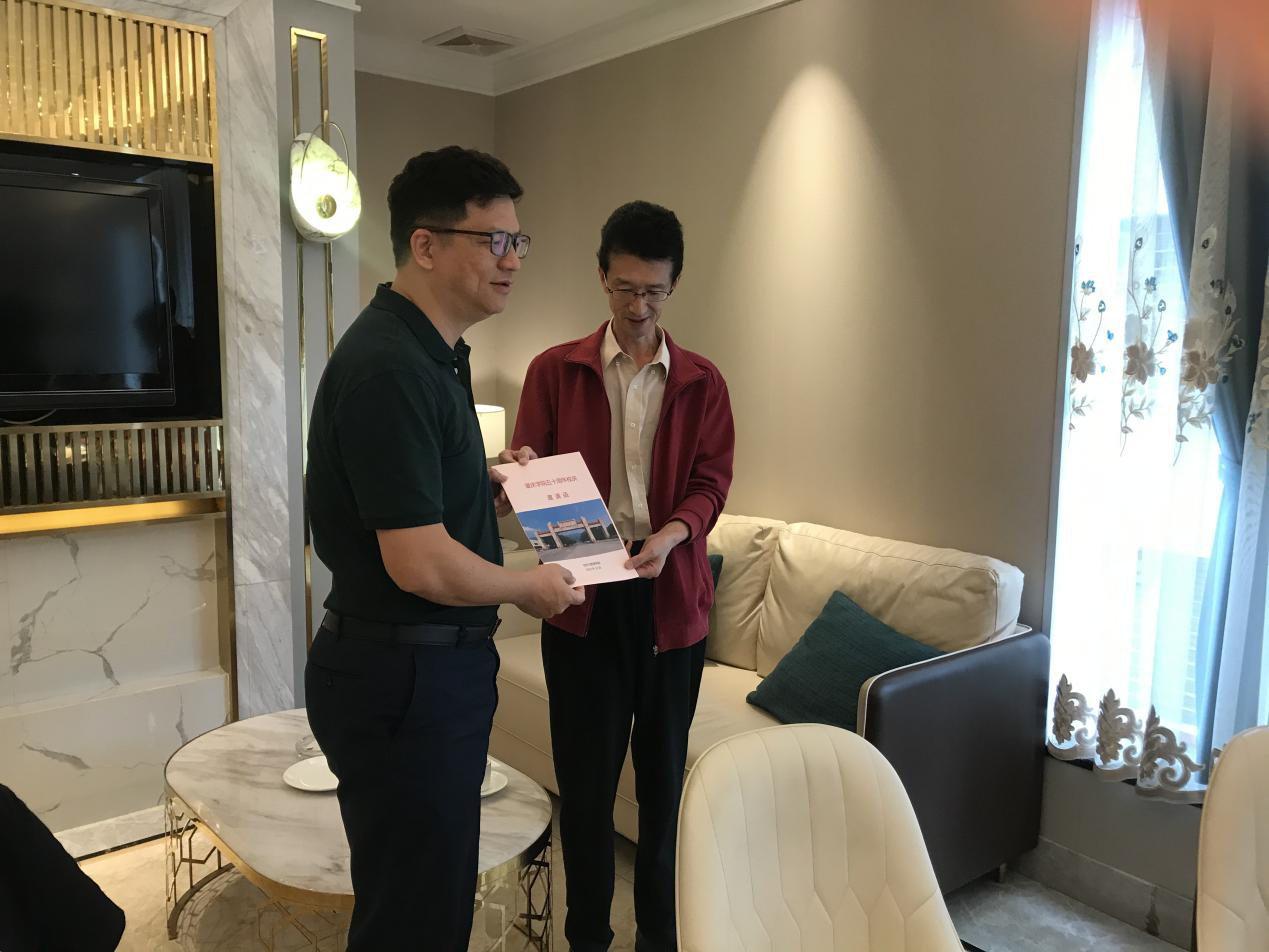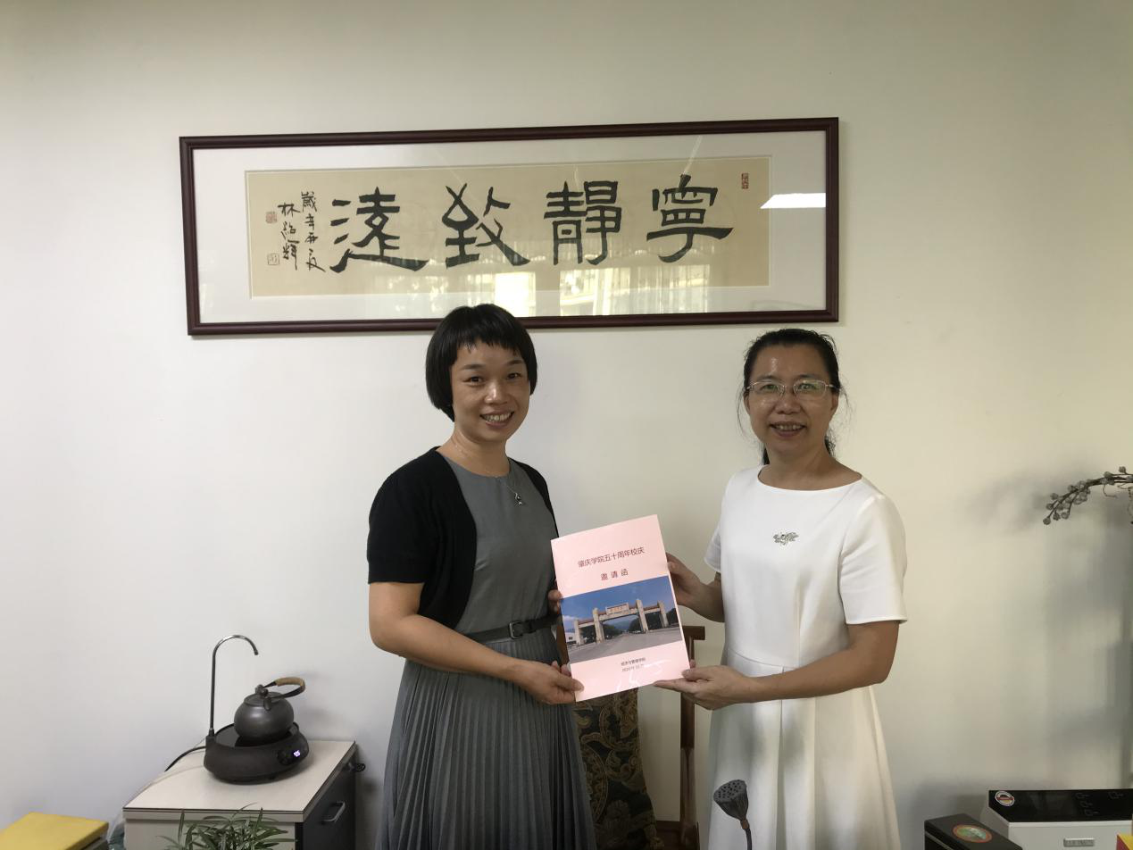 颜书记为员工林泽芳送上校庆邀请函