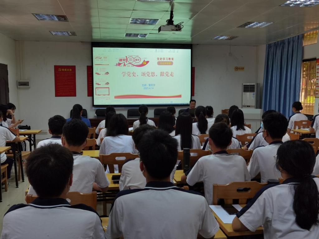 首先,黎天宇书记为入党积极分子开展了题为《学党史,颂党恩,跟党走》的党课教育。黎书记带领全员从理论、实践、历史、现实四个维度深入学习,回顾中国共产党百年奋斗的光辉历程和伟大贡献以及学习中国共产党在长期奋斗中铸就的伟大精神,与大家纵览百年党史中重大、重要和具有深远历史意义的革命事件,学习了在筚路蓝缕、风雨兼程的壮阔征程中形成的井冈山精神、长征精神、抗美援朝精神、“两弹一星”精神、载人航天精神、伟大抗疫精神、脱贫攻坚精神等。党课最后,黎书记给予各支部入党积极分子殷切的寄语,希望同学们能够深刻理解和发扬我们党在百年奋斗历程中形成的伟大精神,从中汲取初心动力,夯实知行合一的作风。