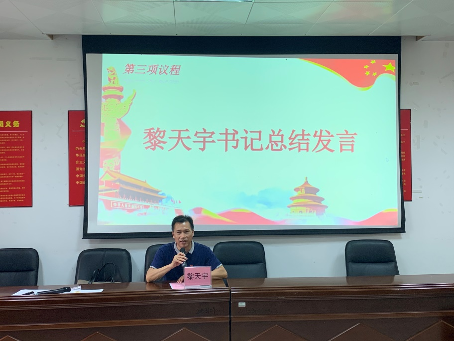 大会最后,黎天宇书记对此次评选进行了总结发言。他首先向所有获得表彰的同学祝贺。希望在座的老党员和2021年新发展的预备党员能够以他们为榜样,在思想、学习、工作、生活等各个方面发挥好共产党员的先锋模范作用,用实际行动来履行共产党员的神圣职责与光荣使命。