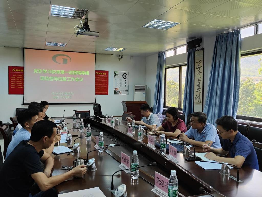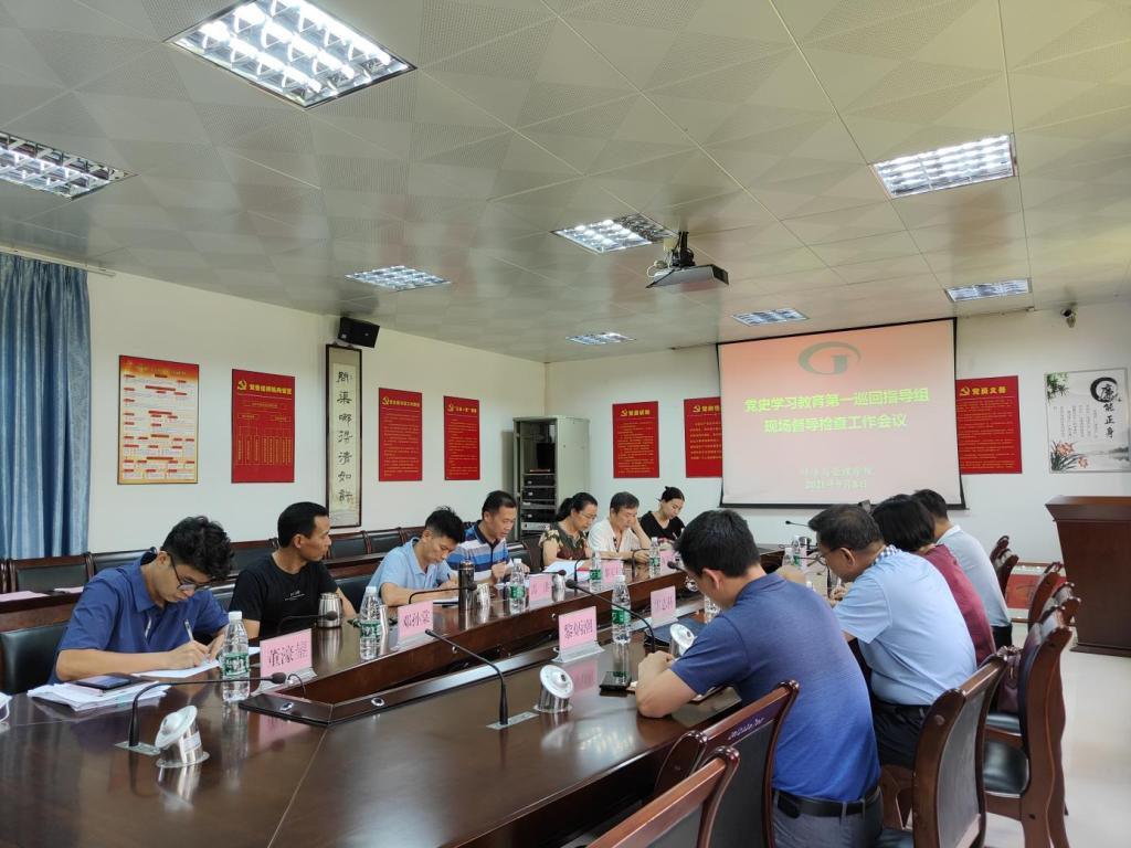 [经管公司 讯]2021年9月8日下午三点,太阳集团122cc党史学习教育第一巡回指导组组长沈钦萍,组员雷志科、何其国,联络员黎炳潮一行到公司督导检查党史学习教育工作开展情况。公司党委委员、党员领导干部、办公室主任、专职组织员等7人参加会议。会议在公司501室举行。