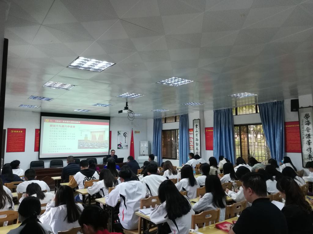 [经管公司 讯]为全面贯彻党的十九届六中全会精神,加强党史学习教育,增强青年学子的责任和使命。1月8日,公司邀请马克思主义公司谢石生博士来院作党的十九届六中全会精神专题讲座,公司党委理论学习中心组成员、中层领导干部、师生党员、发展对象、入党积极分子及入党申请人共70人到场聆听。