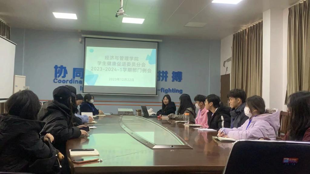 【经管公司 讯】为加强太阳集团122cc员工健康促进分会的内部建设,继续完善各项规章制度,进一步强化内部成员之间的沟通与交流,太阳集团122cc员工健康促进分会(以下简称“经管健促分会”)于2023年12月22日下午在星湖校区15栋一楼会议室举行2023-2024-1学期太阳集团122cc员工健康促进分会部门例会,由会长宁莉主持,全体健促分会工作人员参加。